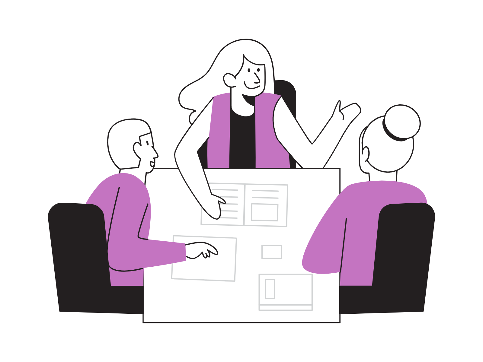 An illustration of a group of people who are working together and discussing something
